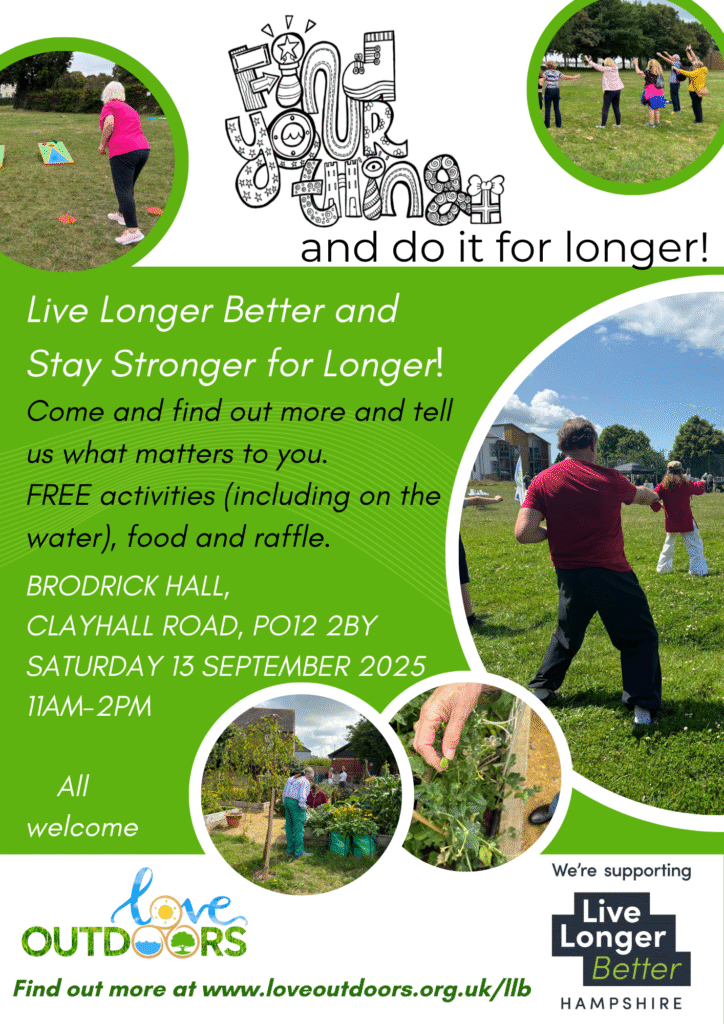 In Gosport the Live Longer project is being led by Gosport Borough Council, in collaboration with a wide range of local partners. Love Outdoors CIC is one of the partners and is helping to bring a series of roadshows across Gosport, giving local residents the chance to have their say, get involved and try new things.